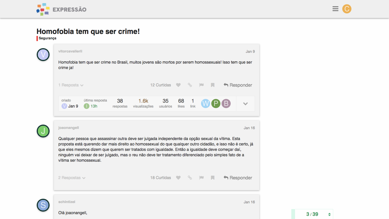 Imagem da lista do fórum de discussões do Portal e-democracia da Câmara Municipal de Nova Friburgo.
