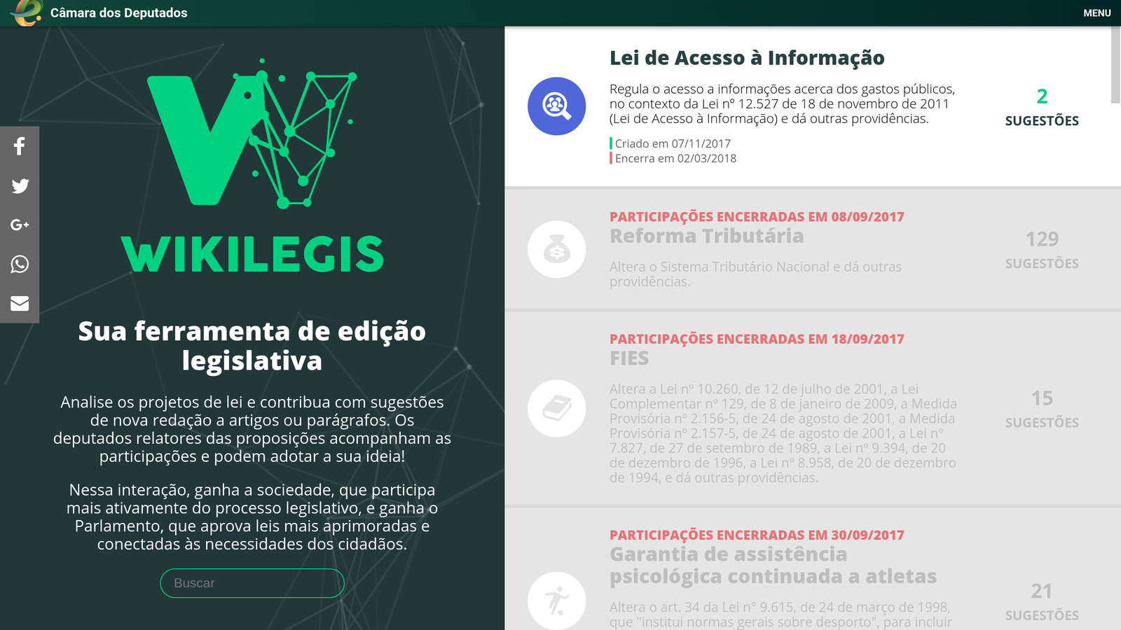 Imagem da página inicial da wikilegis: feraamenta de edição legislativa da Câmara Municipal de Nobva Friburgo.