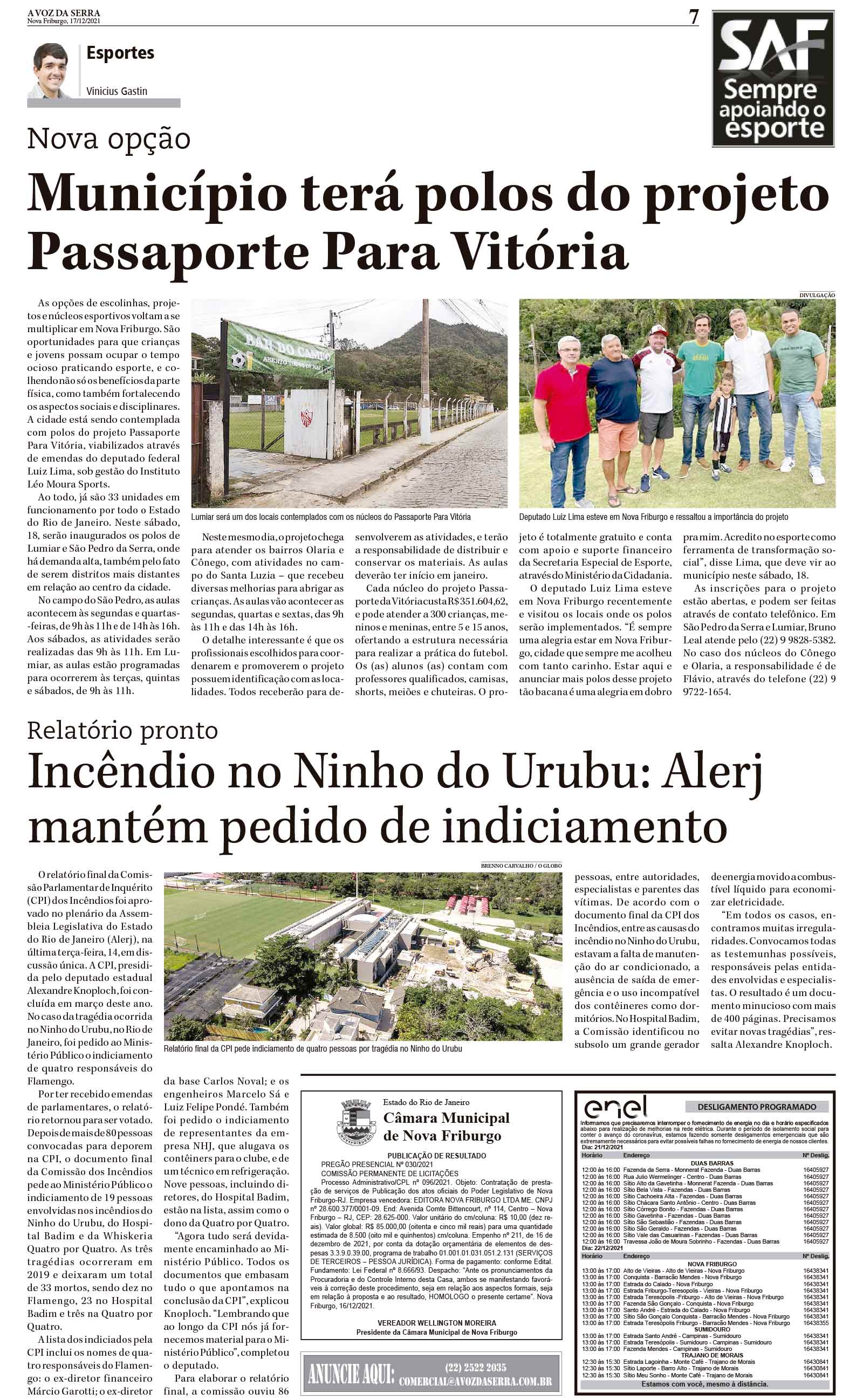 17/12/2021 | edição 10452 | Homologação do Pregão Presencial 030/2021 - Contratação de prestação de serviços de publicação dos atos oficiais do Poder Legislativo de Nova Friburgo